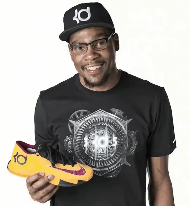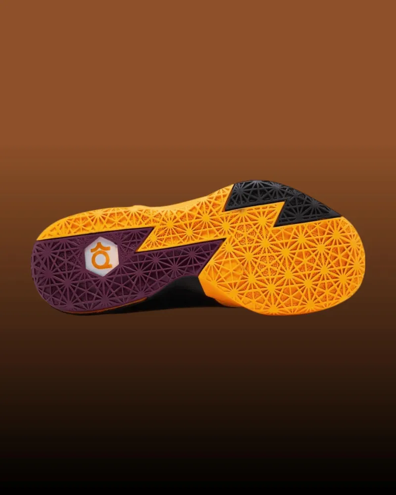 此配色灵感来自杜兰特最喜爱的花生酱和果冻三明治,黄色鞋面来自花生酱,搭配果酱图案Nike Swoosh和果酱色内衬,充满视觉辨识度。